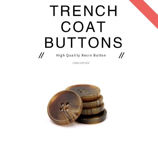 Trench Coat Buttons are versatile for use on Trench. The polished natural grain finish and rounded edge rim give the buttons a smooth touch. The 4 holes are designed to ensure effortless sewing of thread. The actual holes have been finished to ensure they do not cut the thread.